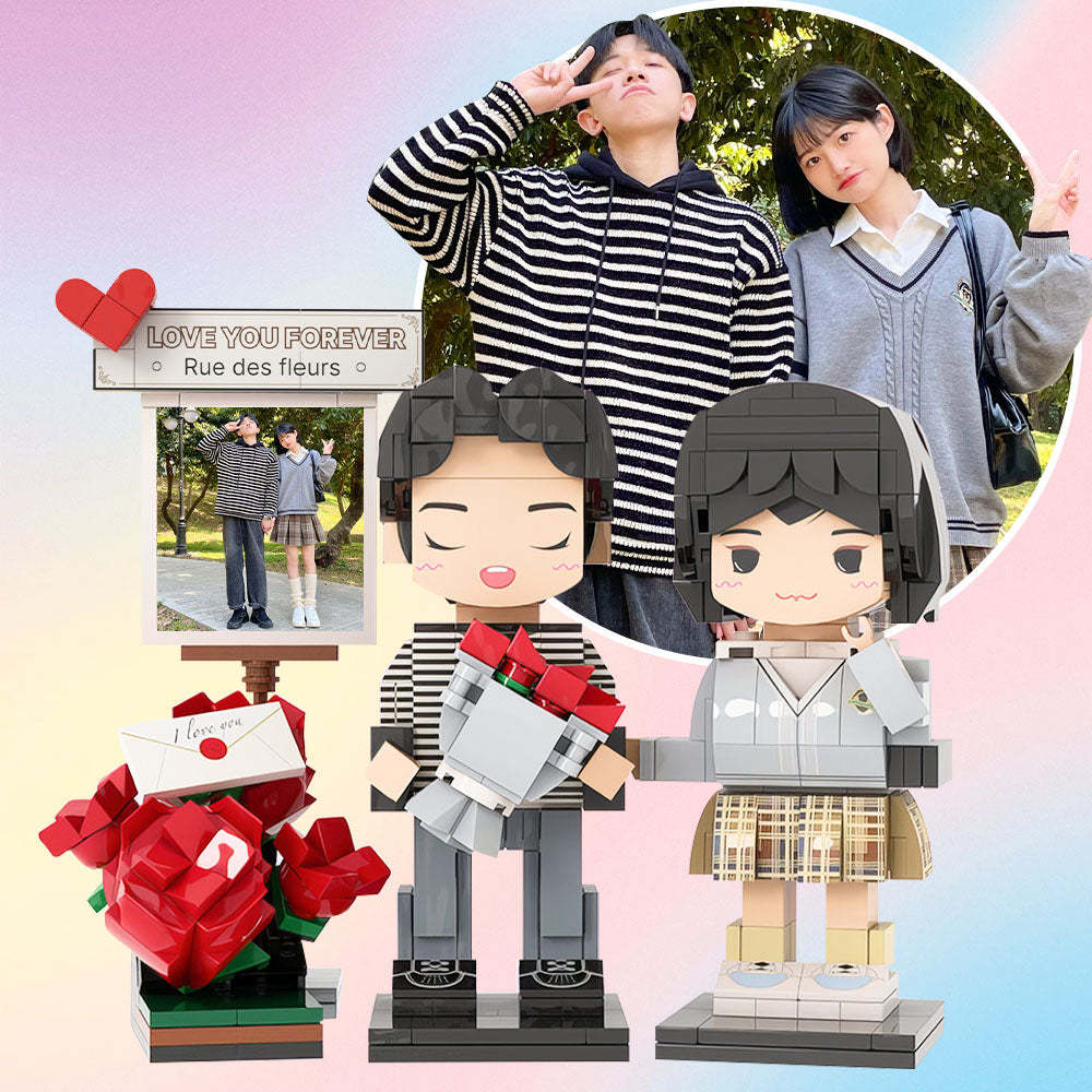 七夕節驚喜禮物 浪漫玫瑰雙人積木公仔 定制雙人積木公仔 情侶定制積木擺件