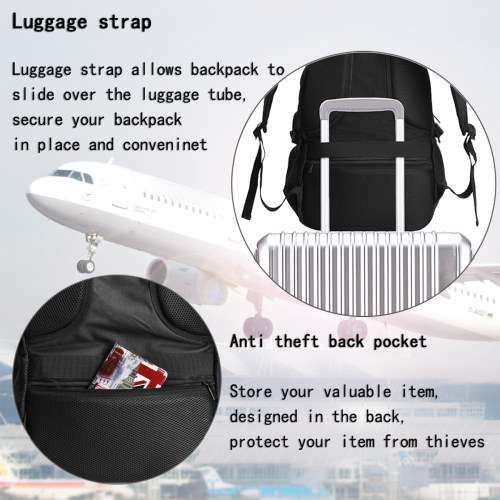 外部:2個側袋,1個前拉鍊袋,書包背帶上的口袋,背面有一條掛在行李箱上的帶子。左側外側有USB接口,兩根插針,裡面有兩根數據線,可以充電和聽音樂。