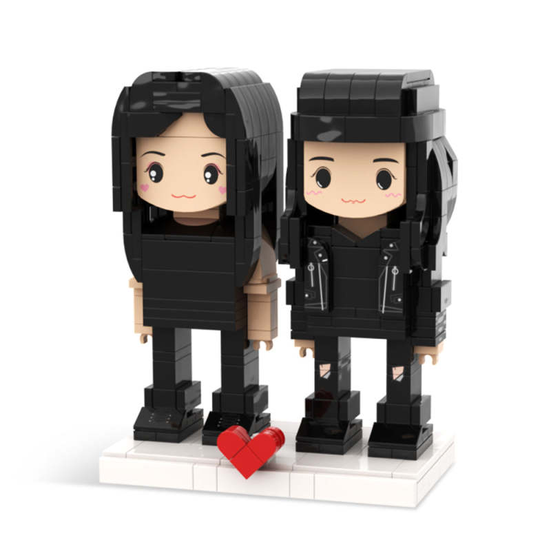情人節雙人女孩可愛客製化拼接磚塊積木人個性化情侶積木人小顆粒積木